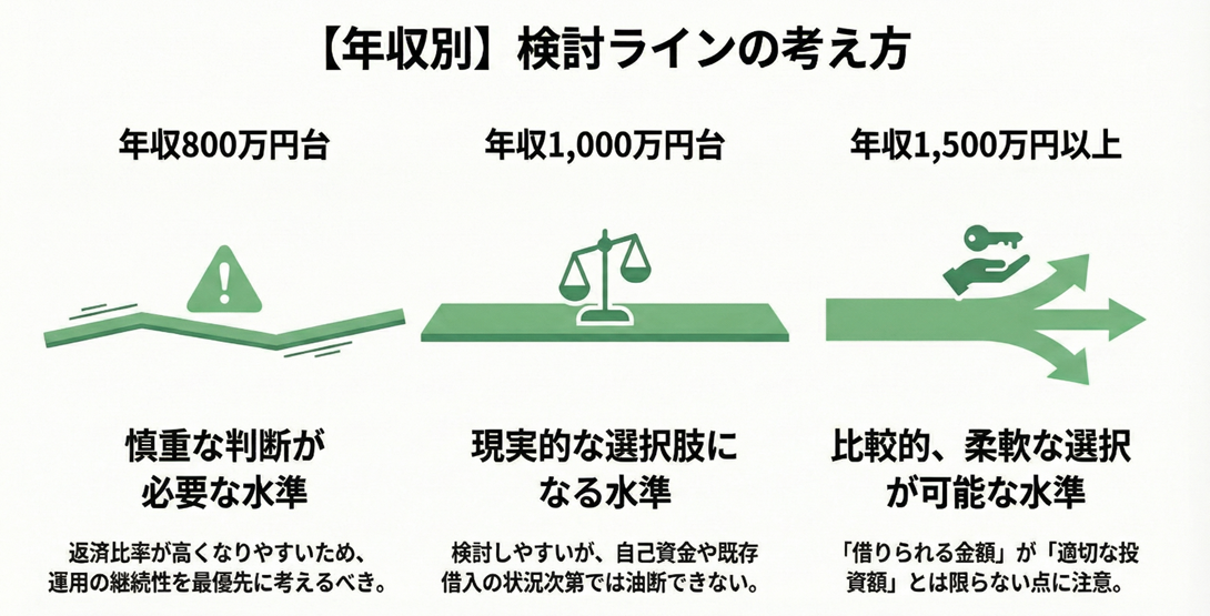 ただし、この年収帯であっても、過度なレバレッジをかけることでリスクが高まる点は変わりません。