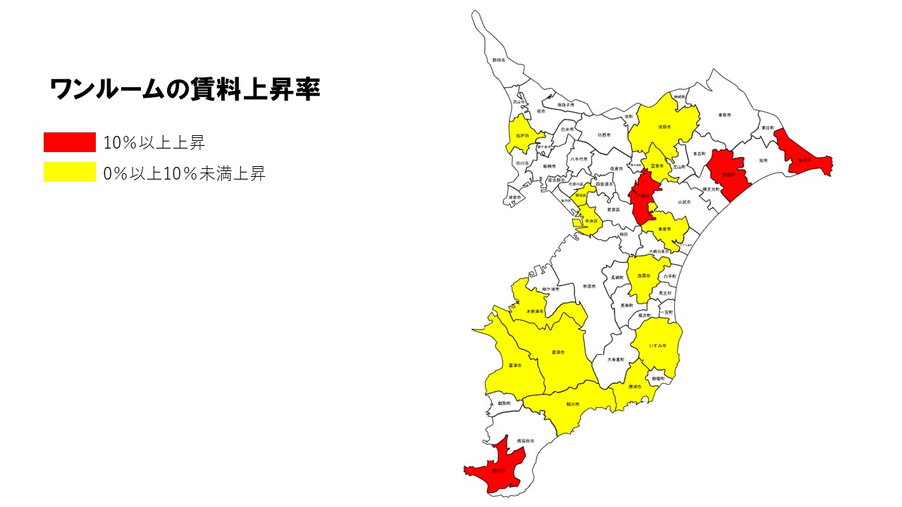 上昇率上位は銚子市(61.4%)、八街市(29.51%)、いすみ市(27.5%)であり、いずれも突出した上昇を示した。