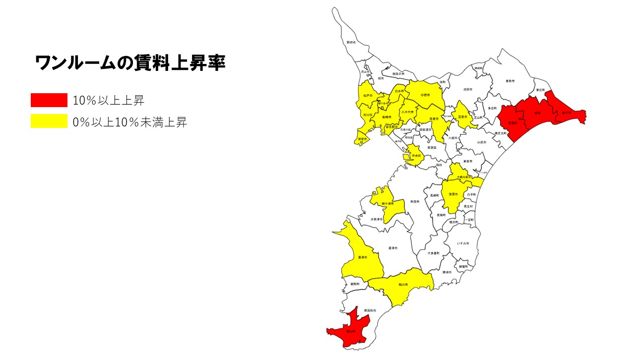 千葉県 賃料上昇ランキング [2025年10月]沿岸部で上昇幅が拡大