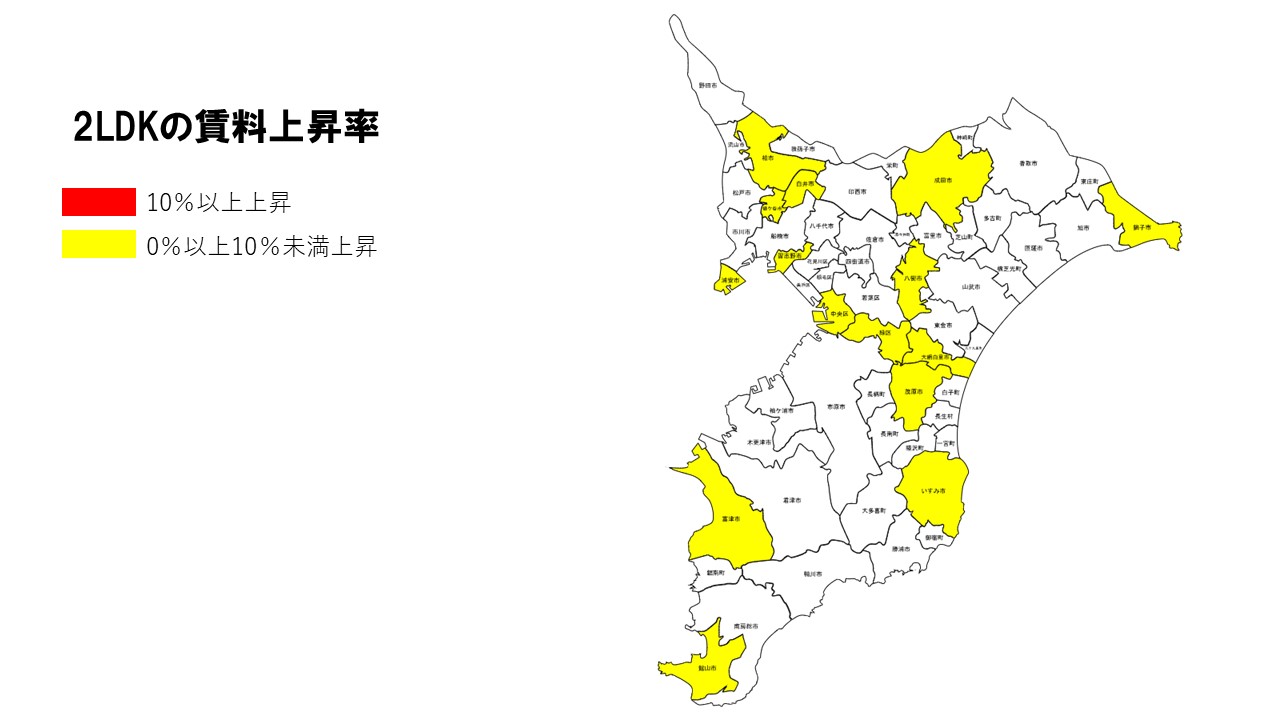 館山市(+13.46%)や茂原市(+9.68%)も上昇しており、広い範囲で上昇傾向が続いた。