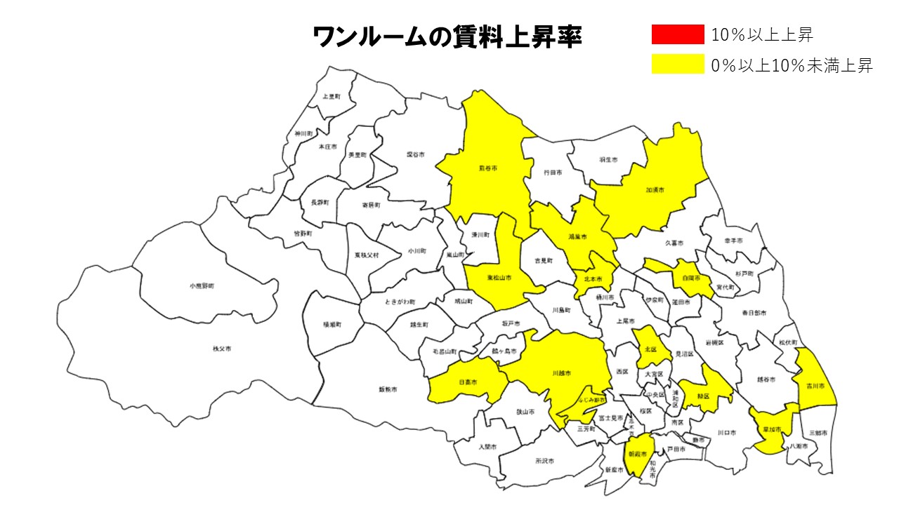 埼玉県内でも、鉄道アクセスを確保しつつ生活コストを抑えられるエリアを選好する動きが、ワンルーム賃料の上昇につながっている可能性がある。