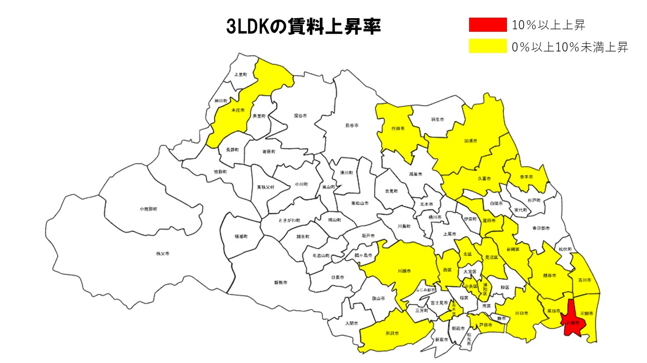 3LDKは八潮市が突出した上昇を示した。