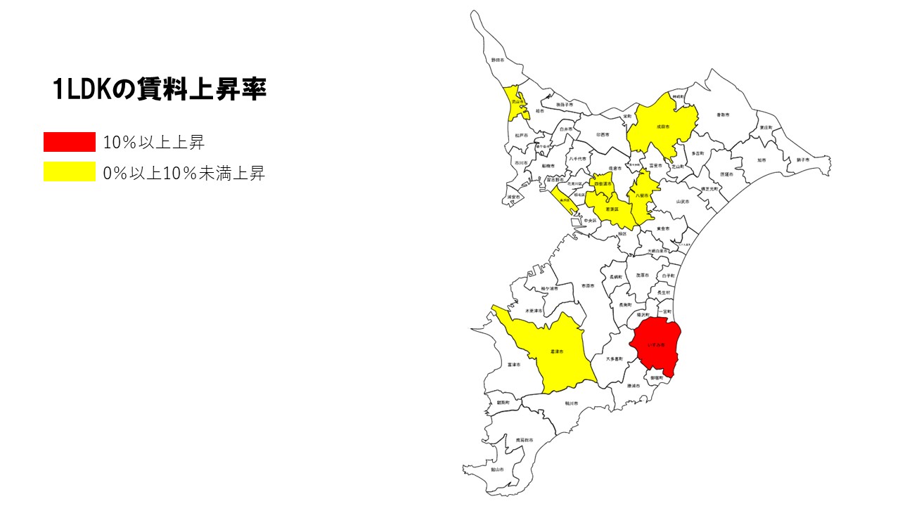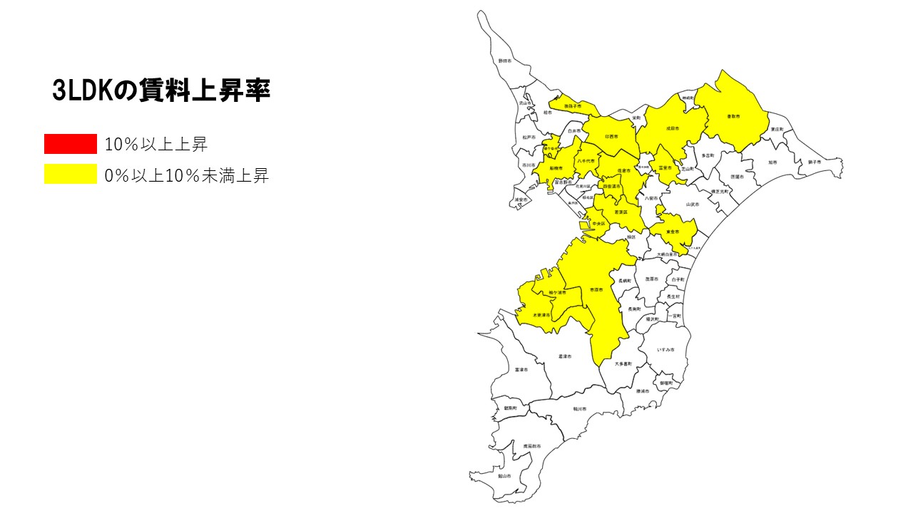 千葉県 賃料上昇ランキング [2026年1月]ファミリー向けは調整局面が継続