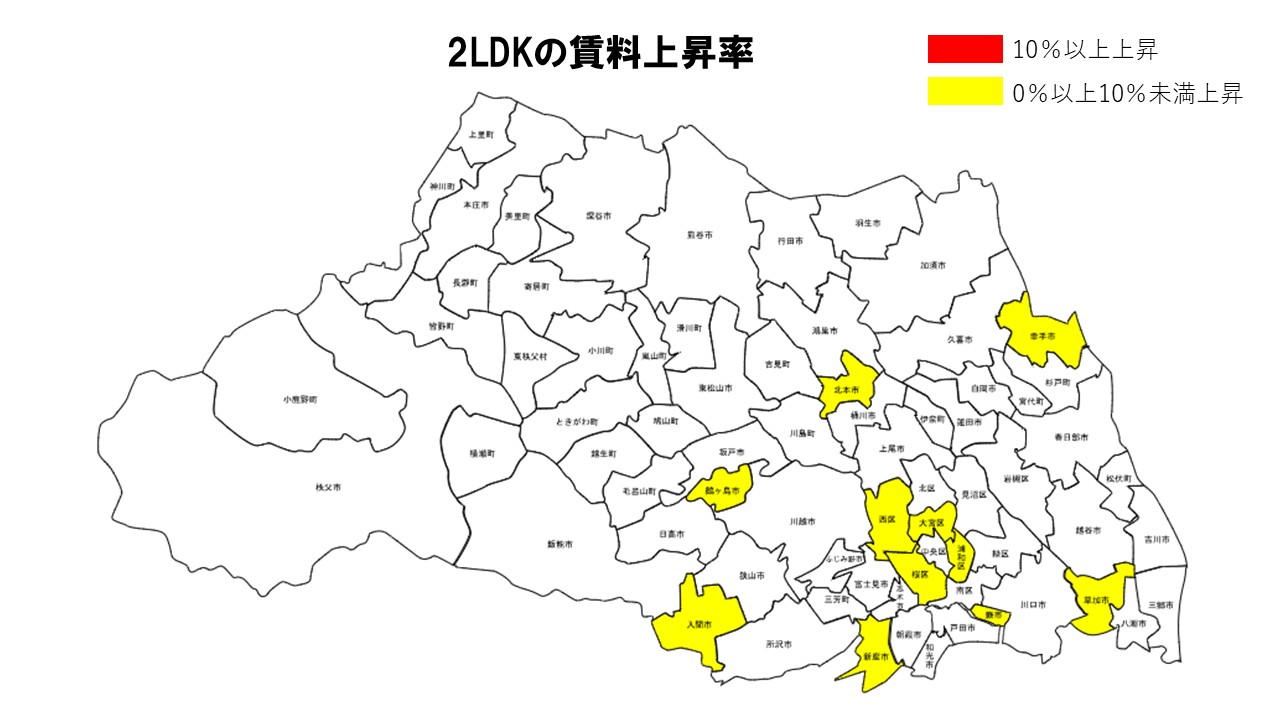 埼玉県全体の安定した賃料市場の特性が引き続き表れた結果といえる。