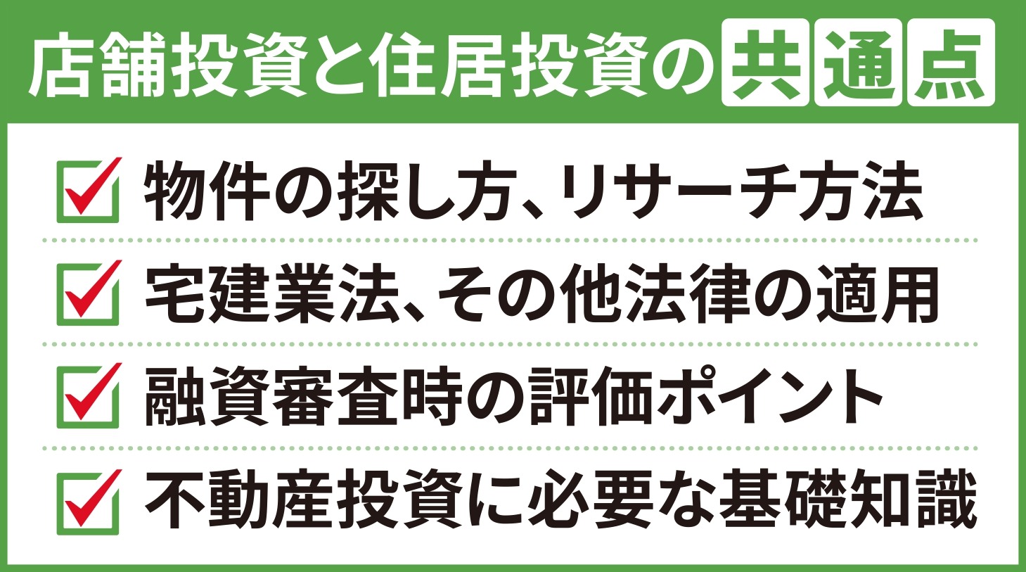 不動産投資をする前に本当にたくさん勉強しましたが、区分マンション投資とかアパート投資とか、居住用物件の運用法を学びました。そもそも店舗投資に関する情報が少ないということもありますが、仕組みの部分でいえば根本は同じだと思います。